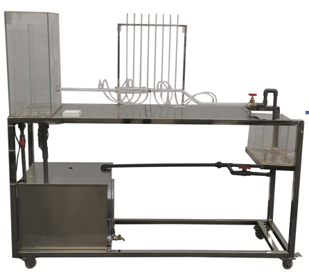 蓄水箱、水泵、有機(jī)玻璃實(shí)驗(yàn)水箱、有機(jī)玻璃計(jì)量水箱、 刻度標(biāo)尺、 秒表、玻璃溫度計(jì)、測壓管、閥門、不銹鋼框架。