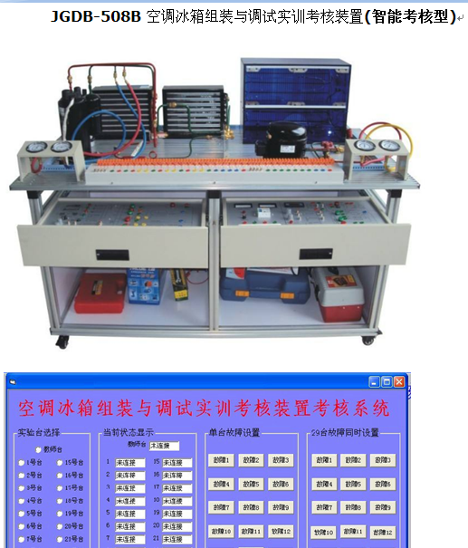 產(chǎn)品名稱:JGDB-508B 空調(diào)冰箱組裝與調(diào)試實(shí)訓(xùn)考核裝置 ( 智能考核型 )