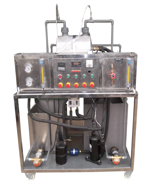 全封閉 制冷壓縮機(jī)、冷凝器、節(jié)流閥、蒸發(fā)器、 冷水泵、熱水泵、玻璃轉(zhuǎn)子流量計(jì) , 水箱、 電加熱裝置、液體轉(zhuǎn)子 流量計(jì)、 8 路萬能 巡檢儀、溫度傳感器、高低壓控制器、干燥過濾器、儲(chǔ)液罐、電流表、電壓表、壓力表 、不銹鋼 移動(dòng)式實(shí)驗(yàn)臺(tái)等組成 。