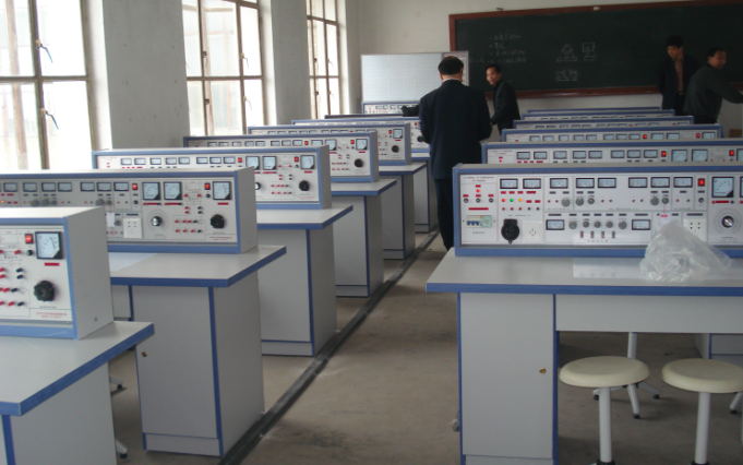 1 、通用電工電子實(shí)驗(yàn)室設(shè)備實(shí)驗(yàn)桌 :12 臺(tái)學(xué)生實(shí)驗(yàn)桌,一臺(tái)兩座,桌子外形尺寸 :160×70×80cm 。桌中央配置通用九孔電路板 ( 尺寸 35×90cm) ,根據(jù)實(shí)驗(yàn)電路在其上任意拼插元件盒成實(shí)驗(yàn)電路,元件盒盒體透明直觀,內(nèi)裝元件一目了然,盒蓋印有元件符號(hào),線條清晰美觀,盒蓋與盒體采用壓卡式結(jié)構(gòu),拆裝維修方便。每張臺(tái)桌配有一粒膠皮板,保護(hù)通用插板與桌面(如需要在桌上放置電動(dòng)機(jī)、焊接等)臺(tái)桌下都是元件儲(chǔ)存柜,放置實(shí)驗(yàn)元器件。