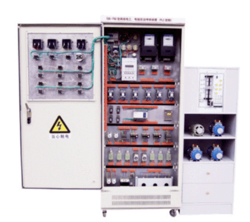 高級(jí)電工考核設(shè)備按標(biāo)準(zhǔn)電氣控制柜設(shè)計(jì)制造規(guī)格,充分利用雙面位置,柜內(nèi)裝有完成各種照明電路所需的單相電度表、日光燈、單聯(lián)開(kāi)關(guān)、插座、感應(yīng)開(kāi)關(guān)、漏電開(kāi)關(guān)等,以及電氣控制所需要的多種低壓電器,如漏電斷路器、熔斷器、電流互感器、交流接觸器、時(shí)間繼電器、熱繼電器、中間繼電器、行程開(kāi)關(guān)、按鈕、信號(hào)燈、轉(zhuǎn)換開(kāi)關(guān)、電壓表、電流表、功率表及電度表等,為了延長(zhǎng)電器使用壽命,各電器的接點(diǎn)都與接線(xiàn)端子相連,再由接線(xiàn)端子與被控制電氣連接。