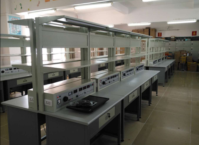 4. 尺寸為: 1000 × 700 × 1800mm ;臺面高 750mm ;掛板高 1050mm ;帶抽屜,整體為鋼木結(jié)構(gòu);前端有寬為 300mm 的層板,用于放示波器或函數(shù)發(fā)生器等常用工具;臺面配備防燙絕緣膠皮;臺子自帶電源部分包括:單相 220V 交流市電,由插座輸出,可供外接儀器備用。實(shí)訓(xùn)臺頂端自帶 LED 日光燈;用于照明;