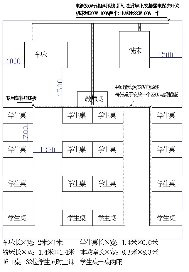 注:5、學校負責提供標準尺寸教室一間,并引入380V動力和220V普通電源。