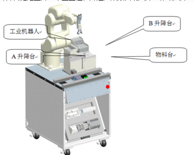 AB兩個(gè)升降臺(tái)分別存儲(chǔ)包裝盒底和包裝盒蓋;工業(yè)機(jī)器人包裝工作站啟動(dòng)后,A升降臺(tái)將包裝盒底推向物料臺(tái)上,A升降臺(tái)隨之上升一個(gè)盒底位;等待上一站檢測(cè)合格的物料瓶到位,當(dāng)上一站合格物料瓶到位,啟動(dòng)工業(yè)機(jī)器人將瓶子抓取,并放入物料臺(tái)上的包裝盒底內(nèi);當(dāng)包裝盒底4個(gè)工位放滿(mǎn)瓶子,工業(yè)機(jī)器人自動(dòng)從B升降臺(tái)上吸取盒蓋,蓋在包裝盒上,B升降臺(tái)隨之上升一個(gè)盒蓋位,并通知成品自動(dòng)入庫(kù)工作站入庫(kù)。