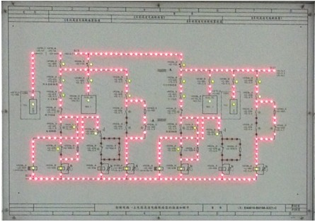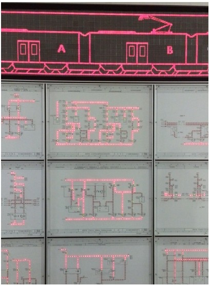 本系統(tǒng)使用真實(shí)走線、真實(shí)器件及LED流水燈等方式,真實(shí)、直觀、動(dòng)態(tài)的呈現(xiàn)出地鐵列車電氣回路的控制邏輯;使用LED點(diǎn)陣顯示屏與列車電氣回路動(dòng)作關(guān)聯(lián),演示列車升降弓、高斷閉合斷開(kāi)、列車牽引制動(dòng)、列車前進(jìn)后退等動(dòng)畫效果圖;在電路中設(shè)置故障開(kāi)關(guān)和電路測(cè)試點(diǎn),可人為切斷電路回路仿真電路故障,通過(guò)工具測(cè)量、分析后可排除故障。