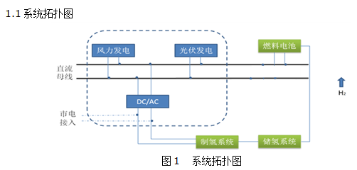 其工作原理是風(fēng)力、光伏發(fā)電系統(tǒng)發(fā)電,并由電池儲(chǔ)能,DC/AC逆變成交流電,驅(qū)動(dòng)電解水設(shè)備制氫。氫氣通過(guò)儲(chǔ)氫系統(tǒng)儲(chǔ)存,并驅(qū)動(dòng)燃料電池電堆發(fā)電。