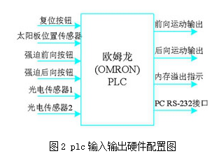 跟蹤控制器采用可編程邏輯控制器plc,它是太陽能電池板跟蹤系統(tǒng)的控制核心,是系統(tǒng)研究工作的重點。系統(tǒng)采用歐姆龍(omron)公司近年推出的α系列plc,該機型為介于大型機與小型機之間的中小型機,***大控制i/o點數(shù)為1184點。在應(yīng)用中,中央處理器單元(cpu)采用c200hx-cpu43-e,它自帶一個編程口和一個rs232c口,該cpu具有豐富的指令功能,編程方便;開關(guān)量輸入模塊選用c200h-id212;開關(guān)量輸出模塊選用c200h-oc225;與上位機的通訊,通過在cpu中插入通訊板c200hw-com06-e(該板具有一個rs232c和一個rs-422/485)實現(xiàn)遠程通訊,由于采用了rs-422接口,采取平衡式發(fā)送,因此數(shù)據(jù)傳輸率高,而且串擾小,傳輸距離可達500m。特別對串并聯(lián)的并網(wǎng)光伏太陽能電池陣列的跟蹤系統(tǒng)控制,能發(fā)揮plc現(xiàn)場總線控制的優(yōu)勢,進行集中控制。經(jīng)過研究和優(yōu)化設(shè)計,應(yīng)用集成標準線路,采用模擬差壓比較原理,控制器具有跟蹤精度高、范圍寬、自動返回功能。限位裝置具有東、西、上、下四個方位的極限限位功能。采用雙重限位控制結(jié)構(gòu),即控制信號限位和驅(qū)動電機限位,保證了設(shè)備可靠地工作。圖2所示為plc輸入/輸出硬件配置圖。
