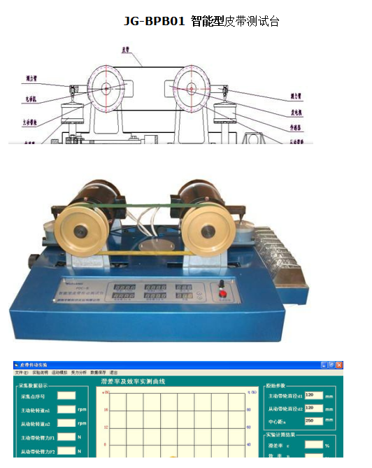智能型皮帶測試臺是結(jié)合機(jī)械原理課程內(nèi)容設(shè)計(jì)的。加深人們對帶傳動皮帶打滑及功率損耗的認(rèn)識。