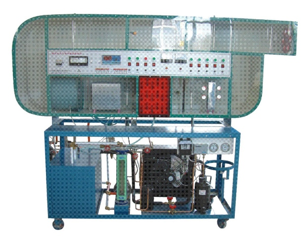 主要配置:移動式角鐵實驗臺、16路巡檢儀、塑料板、有機板、保溫板、儲液罐、銅手閥、鋼管、膨脹閥、加液閥、加液閥、壓力表、電流表、電壓表、高低壓控制器、溫控器、有機玻璃風道;、整流板、干加熱器、加濕器、噴淋器、表冷器、風機、溫度測試系統(tǒng)、配電控制箱、壓縮機、冷凝器、加濕水箱、水泵、轉(zhuǎn)子流量計、ABS管路系統(tǒng)等。