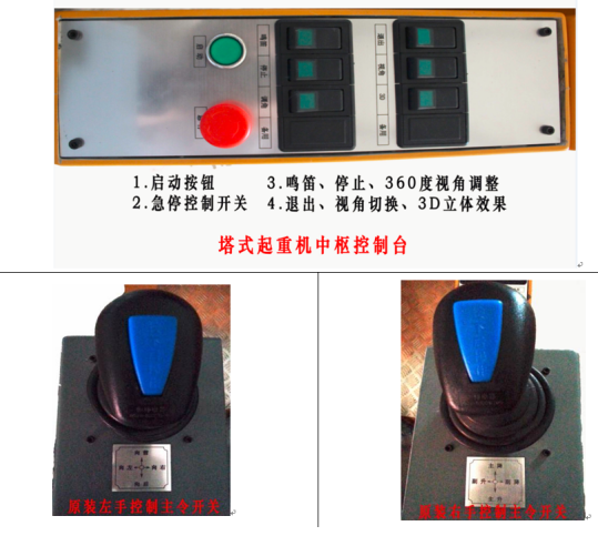 塔吊主令控制手柄,采用原裝主令控制手柄,1-5檔調(diào)速、制動、聯(lián)動、分動和規(guī)范化、形象操作控制與真機操控完全相同。