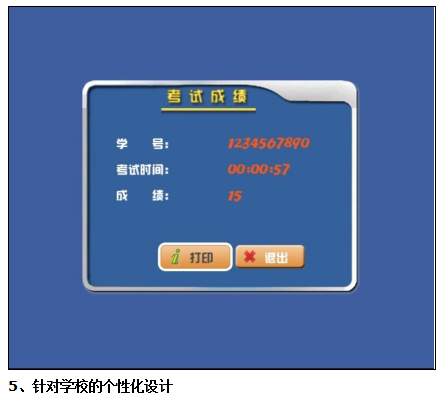 學(xué)員操作完軟件中每個(gè)課題后,系統(tǒng)都會(huì)根據(jù)其完成時(shí)間、剩余分?jǐn)?shù)進(jìn)行評(píng)判該學(xué)員操作是否合格,便于學(xué)員、老師及時(shí)了解學(xué)習(xí)效果并進(jìn)行教學(xué)調(diào)整,從而大大提高了學(xué)校的教學(xué)質(zhì)量。