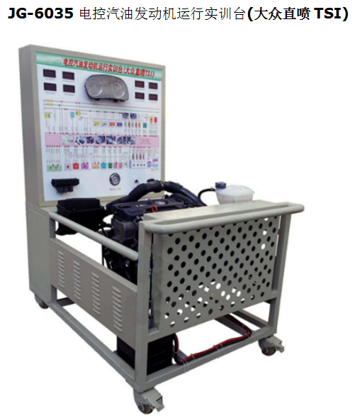 電控汽油發(fā)動機運行實訓臺(大眾直噴TSI)采用電控汽油發(fā)動機總成及運行附件的固定臺架和運行檢測控制面板臺架兩部分組成。