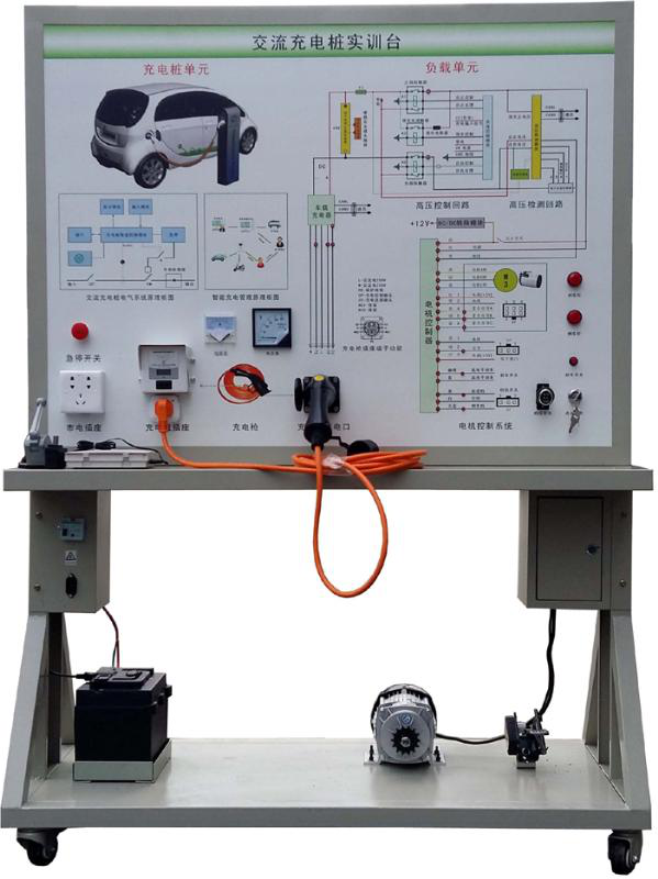 電動(dòng)車交流單槍充電樁、智能充電卡片、充值軟件、電壓顯示、電流顯示、交流充電樁充電插座/充電槍、蓄電池組、負(fù)載單元等組成,可移動(dòng)的臺(tái)架。