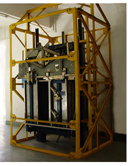 a :井道架:支承鋼架采用 50 × 50 × 5# 角鋼;斜拉采用 50 × 50 × 5# 角鋼,模擬井道壁,表面環(huán)氧聚塑噴涂。