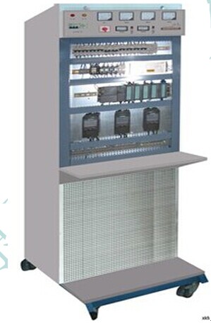 網(wǎng)板式 PLC 變頻器實(shí)訓(xùn)柜是在電工的基礎(chǔ)上進(jìn)行改進(jìn),增加了 PLC 直接控制工業(yè)電氣實(shí)驗(yàn)、再增加了變頻器的自動(dòng)調(diào)速實(shí)驗(yàn),增加了電腦網(wǎng)絡(luò)連網(wǎng)考試功能,可有老師主控電腦制進(jìn)行自動(dòng)聯(lián)網(wǎng)考試。該裝置按標(biāo)準(zhǔn)電氣控制柜設(shè)計(jì)制造規(guī)格,采用網(wǎng)孔板結(jié)構(gòu),柜內(nèi)裝有電路所需的 PLC 、變頻器、電度表、日光燈、開(kāi)關(guān)、插座、感應(yīng)開(kāi)關(guān)、漏電開(kāi)關(guān)以及電氣控制所需要的多種低壓電器,如漏電斷器、熔斷器、電流、互感器、交流接觸器、時(shí)間繼電器、熱繼電器、中間繼電器、行程開(kāi)關(guān)、按鈕、信號(hào)燈、轉(zhuǎn)換開(kāi)關(guān)、電壓表、電流表、有動(dòng)功率表、無(wú)動(dòng)功率表、電度表和工作電源、定時(shí)、誤操作記錄儀等,增加了電腦網(wǎng)絡(luò)式連網(wǎng)考核功能,可由教師主控電腦控制 64 臺(tái)。