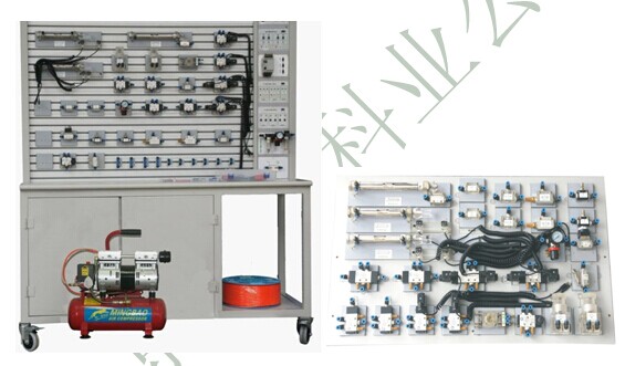 實(shí)驗(yàn)桌( 1 張),實(shí)驗(yàn)支架( 1 套雙面),氣動元器件( 2 套,清單詳見供貨目錄),以及電氣控制器件( 2 套),小型空氣壓縮機(jī)( 1 臺)等。