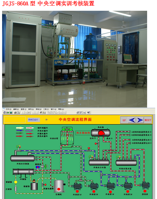 JGJS-860A 型中央空調(diào)實訓(xùn)考核裝置是根據(jù)《中華人民共和國教育行業(yè)標(biāo)準(zhǔn)(制冷和空調(diào)運用與維修專業(yè)儀器設(shè)備配備標(biāo)準(zhǔn))》,教育部“振興 21 世紀(jì)職業(yè)教育課程改革和教材建設(shè)規(guī)劃”的教學(xué)要求,結(jié)合生產(chǎn)實際和職業(yè)崗位的技能要求,按照職業(yè)及本科院校的教學(xué)、實訓(xùn)、實驗要求研制和開發(fā)的產(chǎn)品。