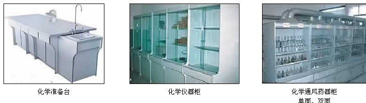 | 化學(xué)準備室 (通風化學(xué)藥品柜、單面柜5個、雙面柜5個、準備臺1張、轉(zhuǎn)椅1張) |