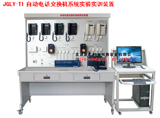 JGLY-T1 自動(dòng)電話(huà)交換機(jī)系統(tǒng)實(shí)驗(yàn)實(shí)訓(xùn)裝置 自動(dòng)電話(huà)交換機(jī)系統(tǒng)實(shí)驗(yàn)實(shí)訓(xùn)裝置 ( 1 )裝置組成: 自動(dòng)電話(huà)交換機(jī)系統(tǒng)實(shí)驗(yàn)實(shí)訓(xùn)裝置 ,元器件均采用實(shí)物,整個(gè)實(shí)訓(xùn)裝置主要由程控電話(huà)交換機(jī)、專(zhuān)用數(shù)字話(huà)機(jī)、電話(huà)打線(xiàn)鉗、電話(huà)機(jī)、音箱、模擬局機(jī)系統(tǒng)等組成。 ( 2 )系統(tǒng)實(shí)訓(xùn)功能: 能進(jìn)行各種模擬自動(dòng)電話(huà)交換機(jī)系統(tǒng)操作演示,卡線(xiàn)刀、壓線(xiàn)鉗的使用訓(xùn)練,電話(huà)插頭的制作與測(cè)試,配線(xiàn)架的安裝與卡線(xiàn),話(huà)務(wù)臺(tái)功能和總機(jī)、分機(jī)功能的設(shè)置,交換機(jī)管理系統(tǒng)軟件的操作訓(xùn)練,系統(tǒng)的設(shè)置及調(diào)試、線(xiàn)路的設(shè)計(jì)與連接,故障的設(shè)置、判斷及排除等實(shí)驗(yàn)和實(shí)訓(xùn)。 ( 3 )系統(tǒng)技術(shù)指示: a 、工作電壓:?jiǎn)蜗嗳(xiàn) 220V±5% 50Hz b 、整機(jī)容量:< 300W c 、外形尺寸: 1500mm×700mm×1800mm d 、安全保護(hù):具有漏電自動(dòng)保護(hù)裝 e 、故障設(shè)置:具有故障設(shè)置系統(tǒng) ( 4 )可以做的實(shí)訓(xùn)項(xiàng)目 : 實(shí)訓(xùn)項(xiàng)目一:自動(dòng)電話(huà)交換機(jī)功能的模擬 實(shí)訓(xùn)項(xiàng)目二:常用的操作方法 實(shí)訓(xùn)項(xiàng)目三:分機(jī)用戶(hù)的操作 實(shí)訓(xùn)項(xiàng)目四:專(zhuān)用話(huà)機(jī)的操作 實(shí)訓(xùn)項(xiàng)目五:計(jì)費(fèi)管理軟件的操作 實(shí)訓(xùn)項(xiàng)目六:分機(jī)參數(shù)的設(shè)置 實(shí)訓(xùn)項(xiàng)目七:外線(xiàn)參數(shù)的設(shè)置 實(shí)訓(xùn)項(xiàng)目八:系統(tǒng)的設(shè)置與連接 實(shí)訓(xùn)項(xiàng)目九:故障的設(shè)置與排除 實(shí)訓(xùn)項(xiàng)目十:系統(tǒng)的結(jié)構(gòu)與安裝