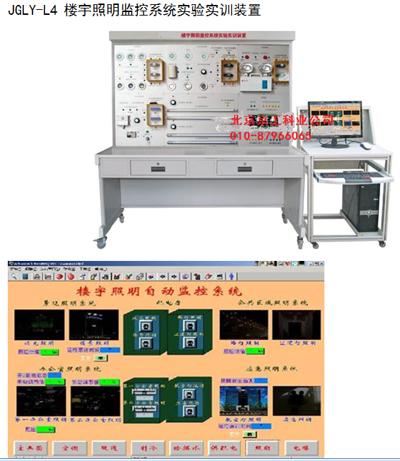 JGLY-L4 樓宇照明監(jiān)控系統(tǒng)實驗實訓(xùn)裝置 樓宇照明監(jiān)控系統(tǒng)軟件界面 ( 1 )裝置組成: 樓宇照明監(jiān)控系統(tǒng)實驗實訓(xùn)裝置,控制部分全部采用實物,控制對象采用仿真模型,整個實訓(xùn)裝置主要由 DDC 控制器、時鐘控制器、照度傳感器、動靜探測器、遙控器、仿真燈具、組態(tài)軟件、配置軟件、控制軟件、專用管理電腦等組成。 ( 2 )系統(tǒng)實訓(xùn)功能: 能進(jìn)行各種燈光照明系統(tǒng)操作演示、直接數(shù)字控制器( DDC )的操作與編程、時鐘控制的編程與操作、照度自動調(diào)節(jié)控制、動靜探測控制、區(qū)域場景控制、手動遙控器控制,系統(tǒng)軟件的組態(tài)、配置與控制,系統(tǒng)軟件的組態(tài)、配置與控制,線路的設(shè)計與連接、故障的設(shè)置、判斷及排除等實驗和實訓(xùn),并可與樓宇自控系列中其它設(shè)備聯(lián)網(wǎng)進(jìn)行各種綜合實訓(xùn)。 ( 3 )系統(tǒng)技術(shù)指示: a 、工作電壓:單相三線 220V±5% 50Hz b 、整機容量:< 300W c 、外形尺寸: 1500mm×700mm×1800mm d 、安全保護:具有漏電自動保護裝置 e 、故障設(shè)置:具有故障設(shè)置系統(tǒng) ( 4 )可以做的實訓(xùn)項目: 實訓(xùn)項目一:公共區(qū)域照明控制與操作實訓(xùn) 實訓(xùn)項目二:辦公室照度自動調(diào)節(jié)控制與操作實訓(xùn) 實訓(xùn)項目三:景觀照明控制與操作實訓(xùn) 實訓(xùn)項目四:情景照明控制與操作實訓(xùn) 實訓(xùn)項目五:應(yīng)急照明控制與操作實訓(xùn) 實訓(xùn)項目六:手動遙控器控制與操作實訓(xùn) 實訓(xùn)項目七:線路故障的判斷與處理 實訓(xùn)項目八:設(shè)備故障的判斷與處理 實訓(xùn)項目九:設(shè)計并安裝一個簡易應(yīng)用系統(tǒng) 實訓(xùn)項目十:組態(tài)軟件設(shè)計實訓(xùn)項目