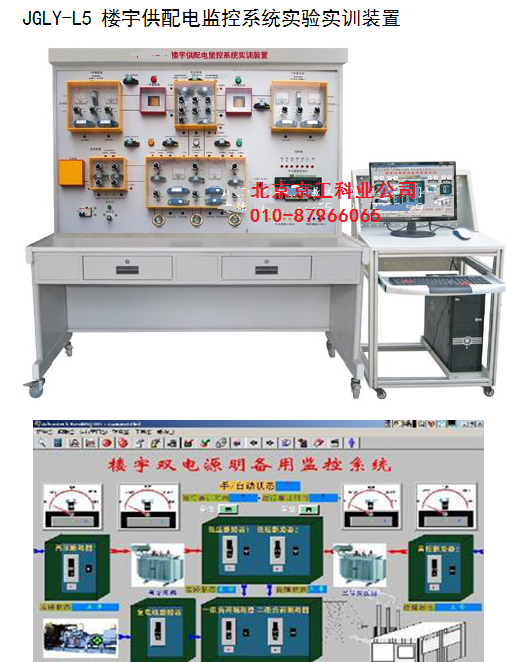 JGLY-L5 樓宇供配電監(jiān)控系統(tǒng)實驗實訓(xùn)裝置 ( 1 )裝置組成: 樓宇供配電監(jiān)控系統(tǒng)實驗實訓(xùn)裝置 ,控制部分全部采用實物,控制對象采用仿真模型,整個實訓(xùn)裝置主要由 DDC 控制器、低壓開關(guān)柜、電壓變送器、電流變送器、功率變送器、功率因數(shù)變送器、仿真模型具、多種低壓電器、組態(tài)軟件、配置軟件、控制軟件、專用管理電腦等組成。 ( 2 )系統(tǒng)實訓(xùn)功能: 能進(jìn)行各種供配電系統(tǒng)模擬操作演示、 DDC 控制器的操作與編程,雙電源明備用監(jiān)控系統(tǒng)、雙電源暗備用監(jiān)控系統(tǒng)、低壓側(cè)供配電監(jiān)控系統(tǒng)、環(huán)網(wǎng)供電監(jiān)控系統(tǒng)等實訓(xùn),監(jiān)測變壓器超溫報警、超溫預(yù)報警,監(jiān)測變壓器的電壓、設(shè)備啟停狀態(tài),故障狀態(tài),系統(tǒng)軟件的組態(tài)、配置與控制,線路的設(shè)計與連接、故障的設(shè)置、判斷及排除等實驗和實訓(xùn),并可與樓宇自控系列中其它設(shè)備聯(lián)網(wǎng)進(jìn)行各種綜合實訓(xùn)。 ( 3 )系統(tǒng)技術(shù)指示: a 、 工作電壓:單相三線 220V±5% 50Hz b 、整機(jī)容量:< 300W c 、外形尺寸: 1500mm×700mm×1800mm d 、安全保護(hù):具有漏電自動保護(hù)裝置 e 、故障設(shè)置:具有故障設(shè)置系統(tǒng) ( 4 )可以做的實訓(xùn)項目: 實訓(xùn)項目一: DDC 現(xiàn)場控制器安裝操作 實訓(xùn)項目二: DDC 現(xiàn)場控制器設(shè)置操作 實訓(xùn)項目三:雙電源明備用監(jiān)控系統(tǒng)控制 實訓(xùn)項目四:雙電源暗備用監(jiān)控系統(tǒng)控制 實訓(xùn)項目五:低壓側(cè)供配電監(jiān)控系統(tǒng)控制 實訓(xùn)項目六:環(huán)網(wǎng)供電監(jiān)控系統(tǒng)控制 實訓(xùn)項目七:線路故障的判斷與處理 實訓(xùn)項目八:設(shè)備故障的判斷與處理 實訓(xùn)項目九:設(shè)計并安裝一個簡易應(yīng)用系統(tǒng)