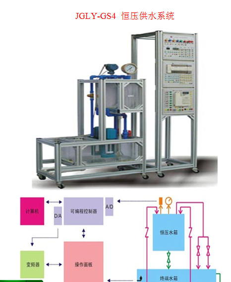 終端水箱:白色透明有機(jī)玻璃制作,直觀觀察水流當(dāng)前狀態(tài)。簡(jiǎn)略模擬,方便學(xué)生反復(fù)實(shí)踐操作,經(jīng)過(guò)增壓水泵工作后將終端水箱中的水抽至恒壓水箱里面進(jìn)行恒壓處理,再送回至終端水箱中,反復(fù)循環(huán)。