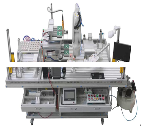 ( 1 )提供工作站啟動(dòng)、停止、模式控制和急停按鈕,可實(shí)現(xiàn)對(duì)設(shè)備運(yùn)行操作,提供故障及設(shè)備運(yùn)行狀態(tài)指示燈,提供多個(gè)故障設(shè)置點(diǎn),可模擬不同情況下的故障,提供多個(gè)電路信號(hào)及氣路信號(hào)的快接插口。