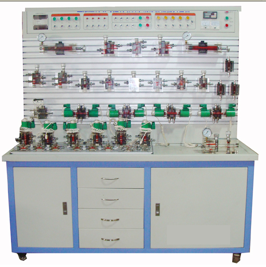 1. 實驗臺為2mm冷軋鋼板噴塑機架,安裝臺面為特制的寬160mm、厚16mm、長1500mm帶T型槽工業(yè)用鋁合金面板。